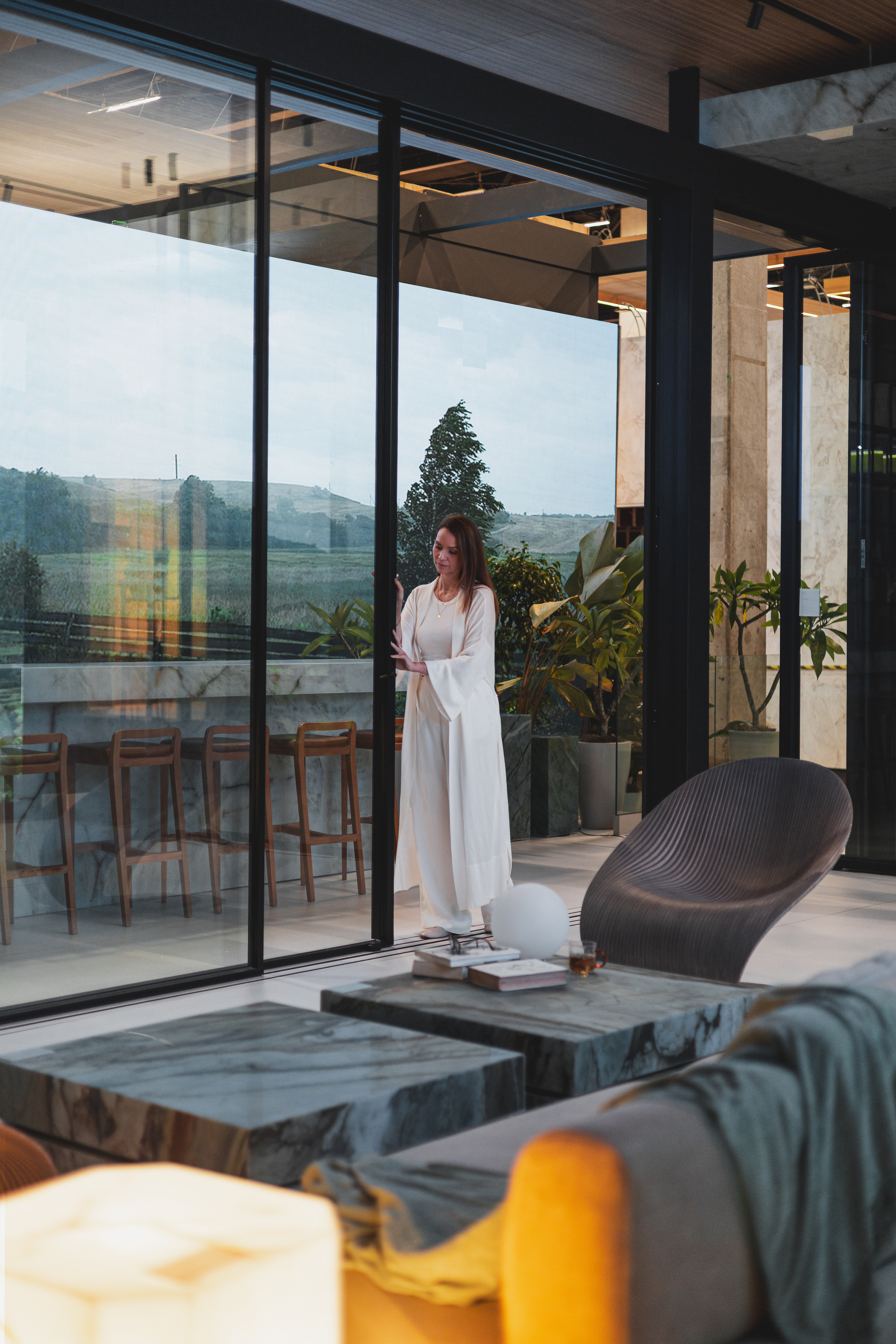 "Ali fora, a cidade brilha em luzes, o ritmo é intenso, o tempo corre. Aqui dentro, o brinde se estende, as risadas aquecem e cada momento se torna inesquecível. O conforto abraça, a noite flui sem pressa."