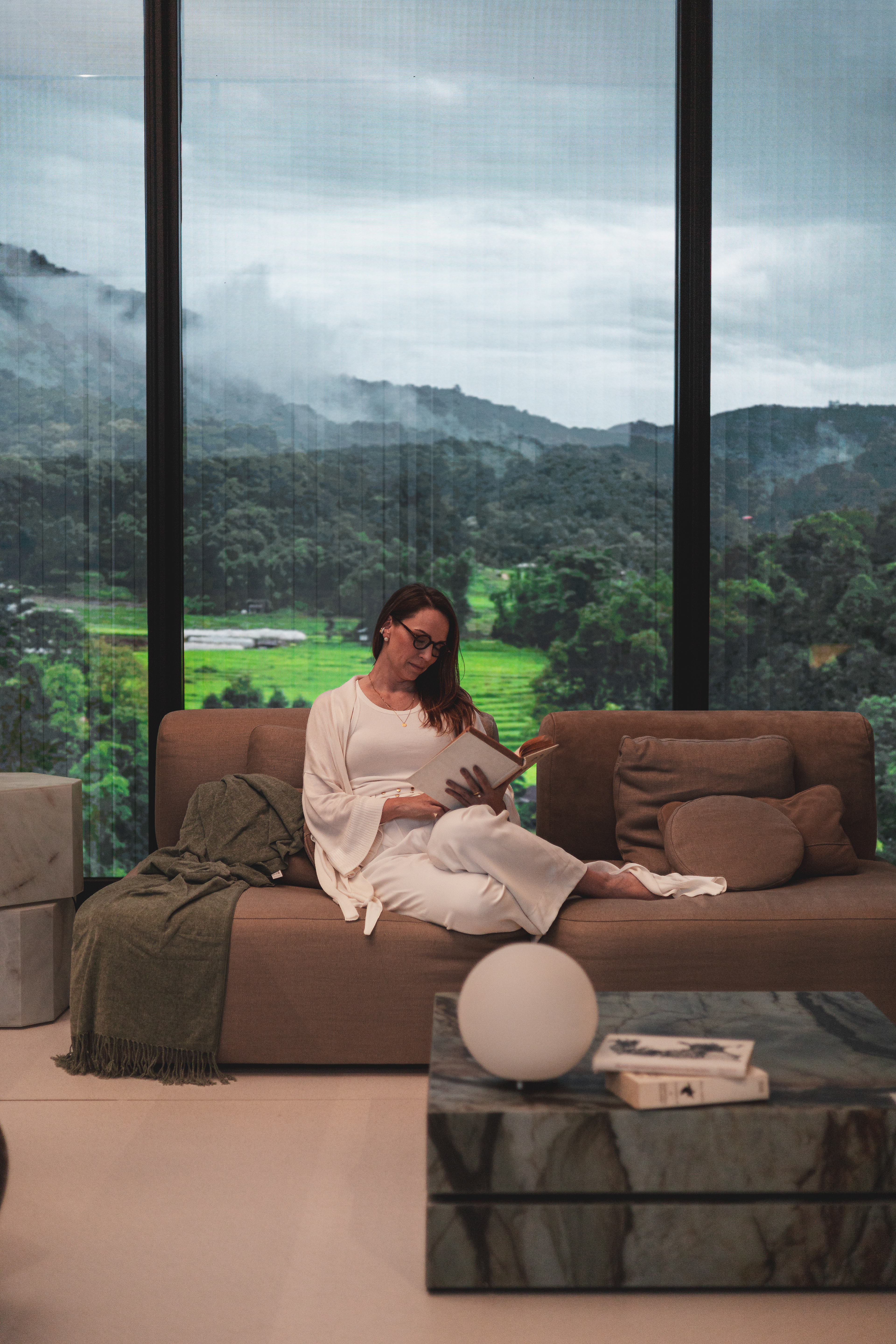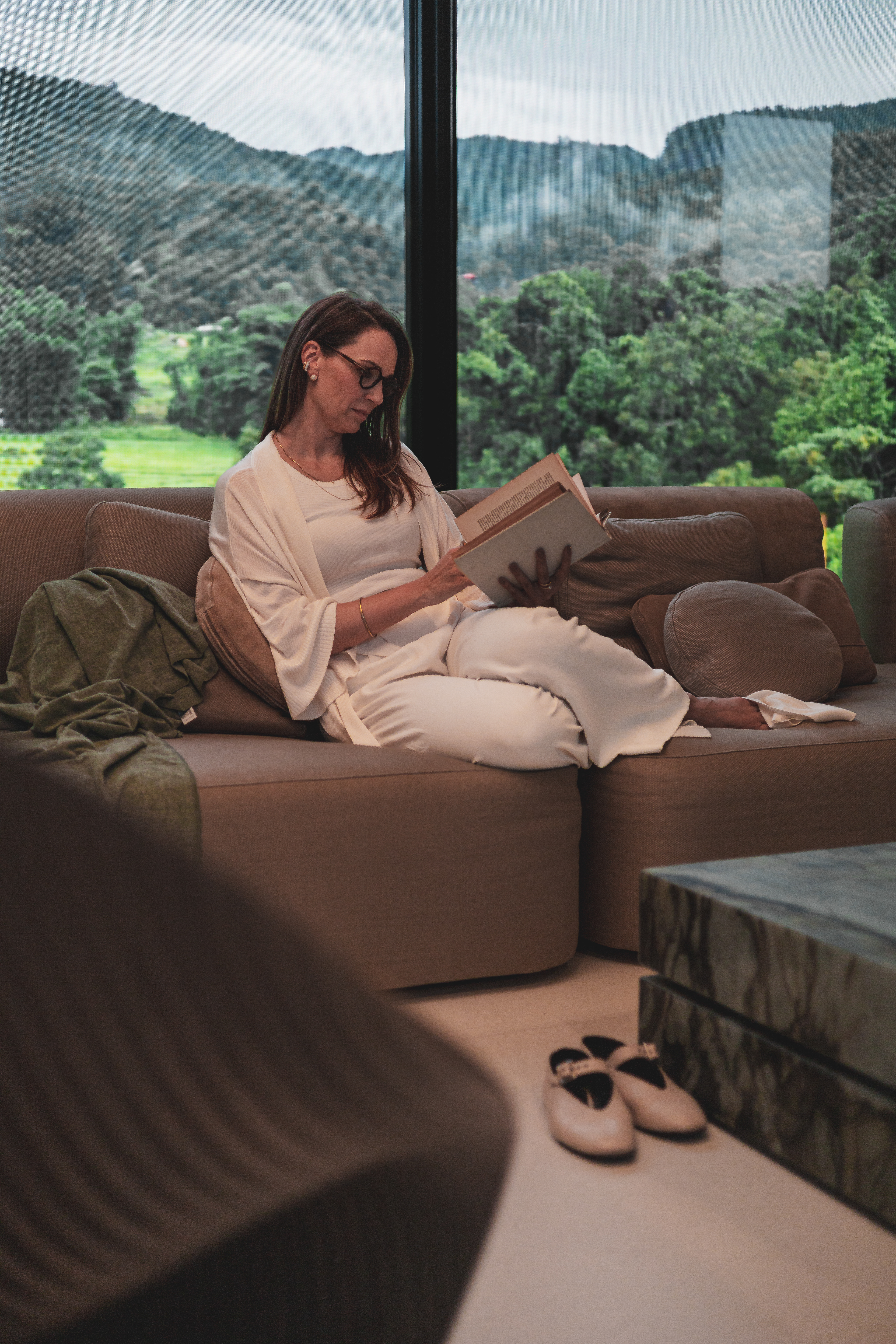 "Ali fora, a chuva, o frio, o tempo que pede calma, Aqui dentro, o aconchego que abraça, o tempo que relaxa e com tranquilidade, passa."